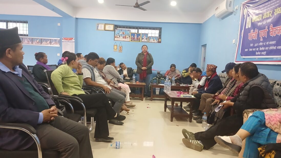 नेपाल मगर संघको मगरात (लुम्बिनी) प्रदेश समितिको पाँचौं पूर्ण बैठक आज सम्पन्न भएको छ । संघको सैनामैना नगर समिति भवनमा सम्पन्न बैठकमा प्रदेशका सबै जिल्लाका प्रतिनिधिहरू र प्रदेश समितिका पदाधिकारी तथा सदस्यहरूको उपस्थिति रहेको थियो ।