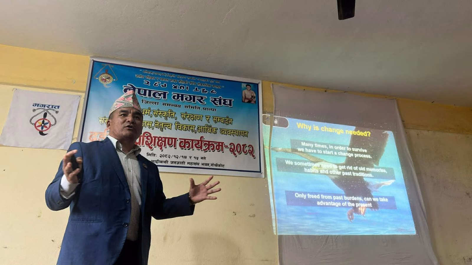 नेपाल मगर संघ जिल्ला समन्वय समिति पाल्पाको आयोजनामा भाषा, धर्म, संस्कृति संरक्षण तथा प्रवर्द्धन, संस्थागत विकास, नेतृत्व विकास र आर्थिक व्यवस्थापन सम्बन्धी दुई दिने प्रशिक्षण कार्यक्रम सम्पन्न भएको छ। उक्त कार्यक्रम २०८२ साल चैत्र १४ र १५ गते गोर्खेकोटमा सञ्चालन गरिएको थियो।